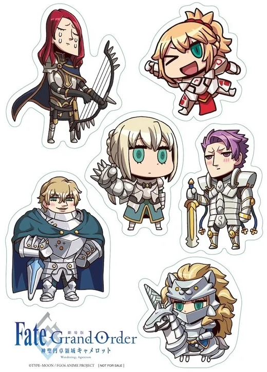 Os filmes intitulados Fate/Grand Order Shinsei Entaku Ryōiki Camelot: Wandering: Agateram e Fate/Grand Order Shinsei Entaku Ryōiki Camelot: Paladin: Agateram irão adaptar a história do jogo “Dai Roku Tokuiten Shinsei Entaku Ryōiki: Camelot” (Order VI: The Sacred Round Table Realm: Camelot).