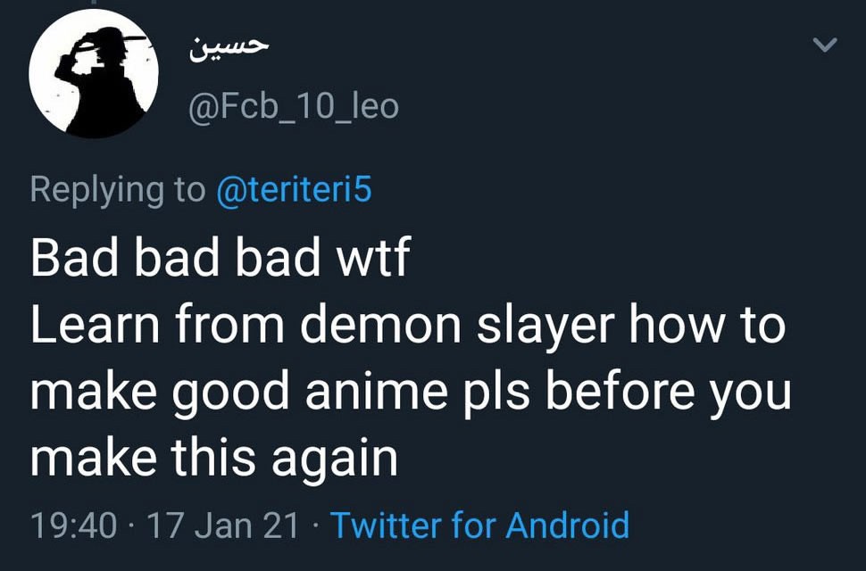 Ruim, ruim, ruim, droga. Aprenda a fazer um bom anime como Demon Slayer e tente novamente.