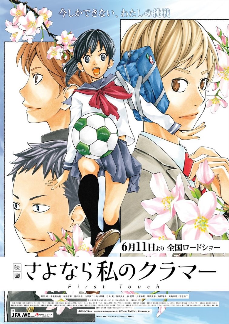 O site para Eiga Sayonara Watashi no Cramer First Touch, o filme anime do mangá de Naoshi Arakawa, Farewell, My Dear Cramer (Sayonara Watashi no Cramer) revelou um trailer e um novo cartaz visual nesta segunda-feira (05/04) e ambos anunciaram que o filme será aberto em 11 de Junho nos cinemas do Japão. Arakawa desenhou pessoalmente a ilustração no visual do pôster. O trailer apresenta a canção de inserção de Aika Kobayashi, “Can you sing along?”