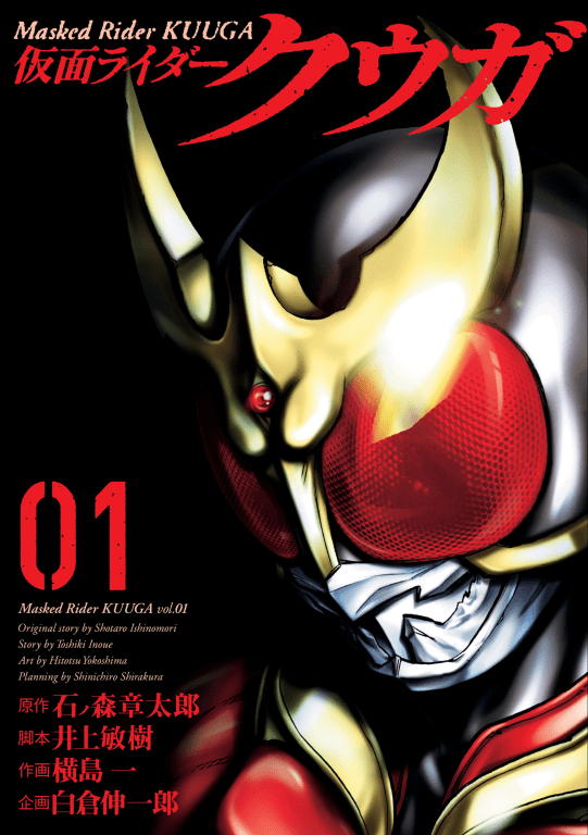 O mangá “Kamen Rider Kuuga” é escrito por Toshiki Inoue e ilustrado por Hitotsu Yokoshima. É publicado na revista Heros da editora Shogakukan desde 2014. A obra possui 16 volumes lançados e segue em andamento.