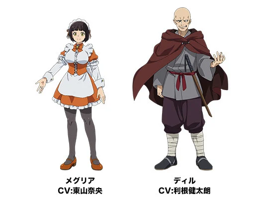 O novo elenco inclui Nao Touyama como Megria (à esquerda acima), “uma recepcionista da guilda de aventureiros em Zoltan.” O outro novo membro do elenco é Kentarō Tone as Dir (à direita), “um homem abençoado com o signo do ‘Mago do Fogo'”.
