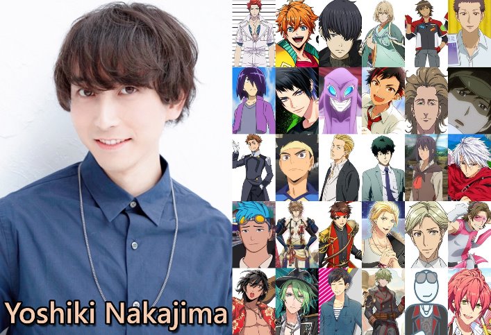 Yoshiki Nakajima é a voz de Jiro Yamashita em The Idolm@ster SideM, Yoshifumi Nitta em Hinamatsuri, Licht Bach / Rihito Sakai em Plunderer, Tetora Nagumo em Ensemble Stars!, entre outros.