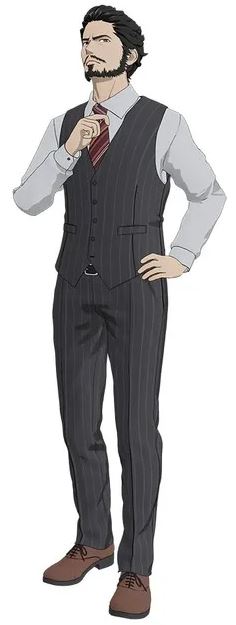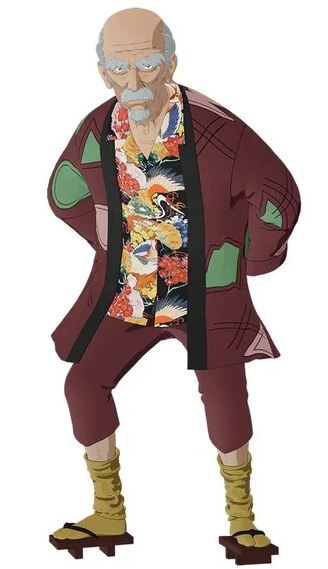 Mugihito como Jingo Negoro, avô de Botan e presidente emérito
