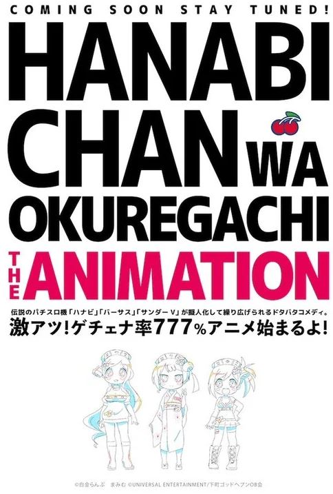 Uma conta no Twitter foi aberta no sábado (07/08) anunciando que uma adaptação em anime do mangá de Ranpu Shirogane e Mamimu, Hanabi-chan wa Okuregachi (Hanabi-chan Is Often Late) está em obras. A Universal Entertainment, criadora do pachi-slo (caça-níqueis pachinko parlor) e dos jogos pachinko, concebeu o conceito de “comédia de antropomorfização pachi-slo”.