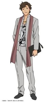 Kenichirō Matsuda como Ukai, que cuida de tudo, desde a aquisição deitens otaku até a procura de garotas de bateria