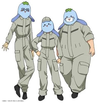 Takahiro Mizushima , Shouta Hayama e Hayato Kaneko como (da esquerda para a direita na imagem abaixo) Megane, Cap, Pocha, que são osmecânicos otaku de Arahabaki