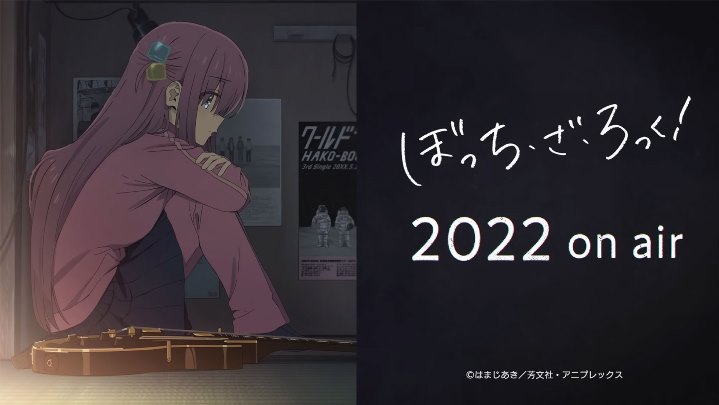 O site oficial para a adaptação em anime TV do mangá 4-koma de Aki Hamaji, Bocchi the Rock! divulgou nesta sexta-feira (17/12) um vídeo teaser e revela um membro do elenco principal, equipe de produção, visual e estreia no decorrer de 2022.