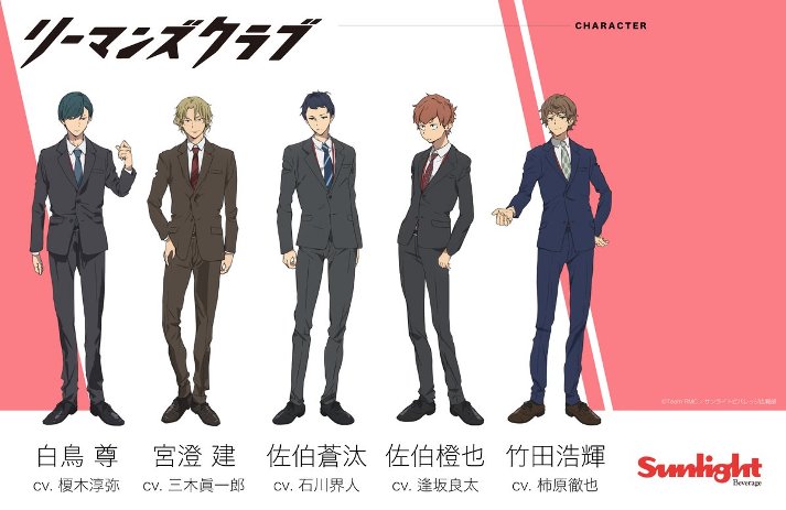 Os membros do elenco recém-anunciados para o Mitsuhoshi Bank (uma equipe rival da Sunlight Beverage) incluem (da esquerda para a direita na imagem acima):