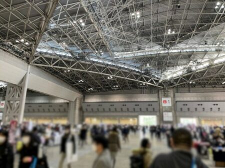 É o mesmo de sempre fazer fila na fila de espera e seguir para o Tokyo Big Sight, mas obviamente dessa vez não há muitas pessoas!