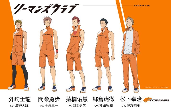 O site oficial para o anime de produção original de badminton da TV Asahi e o estúdio Liden Films, Ryman’s Club (Salaryman’s Club), revelou nesta quinta-feira (06/01) cinco membros adicionais do elenco para o anime. Os membros do elenco são todos membros da Tomari, uma empresa rival da Sunlight Beverage.