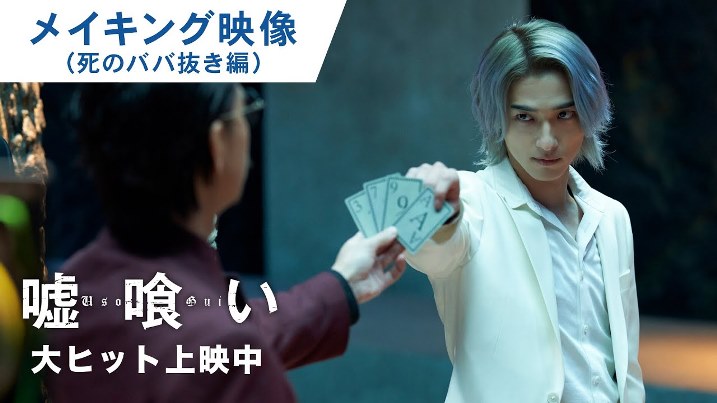 A Warner Bros. Japan divulgou nesta sexta-feira (11/02) um vídeo de bastidores do filme live-action que adapta o mangá de Toshio Sako, Usogui, (The Lie Eater). O vídeo mostra Ryūsei Yokohama e Shohei Miura interpretando seus respectivos personagens Baku Madarame e Ikki Sadakuni em uma cena em que os personagens estão jogando uma versão de alto risco do jogo de empregada doméstica.