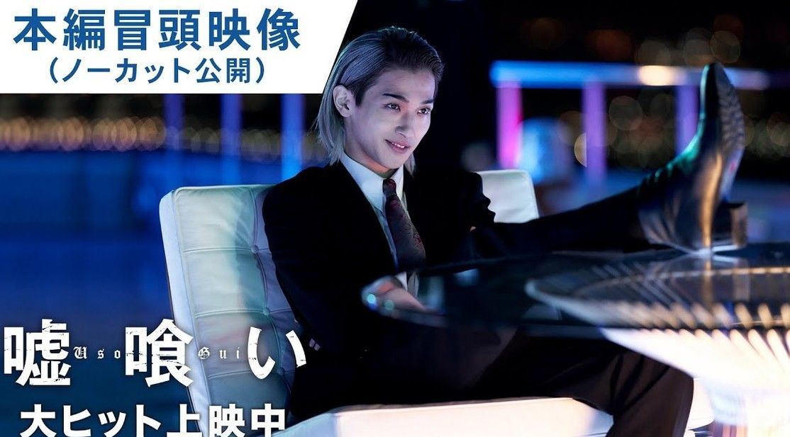 A Warner Bros. Japan divulgou nesta sexta-feira (18/02) um vídeo com a cena de abertura do filme live-action que adapta o mangá de Toshio Sako, Usogui, (The Lie Eater). A cena mostra Madarame (Ryūsei Yokohama) fazendo uma aposta com Sōichi Kiruma (Kaito Sakurai) para se tornar o chefe da organização Kakerō, com uma aposta de que um avião sobrevoará dentro de uma hora. Os lacaios de Kiruma planejam a aposta, Madarame perde e Kiruma decide seu destino.