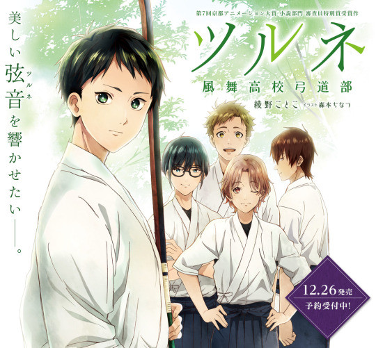 A novel Tsurune recebeu o prêmio Special Judge Award no 7th Kyoto Animation Awards em 2016 e a própria KyoAni começou a publica-la pela KA Bunko em Dezembro de 2016, com ilustrações de Chinatsu Morimoto.