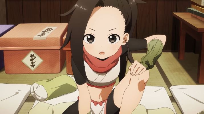 Miyari Nemoto como Sazanka, a baixinha do Dog Team mais jovem que Tsubaki