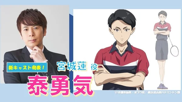 Os jogadores de badminton da vida real, Yūta Watanabe e Arisa Higashino, aparecerão no anime interpretando a si mesmos.