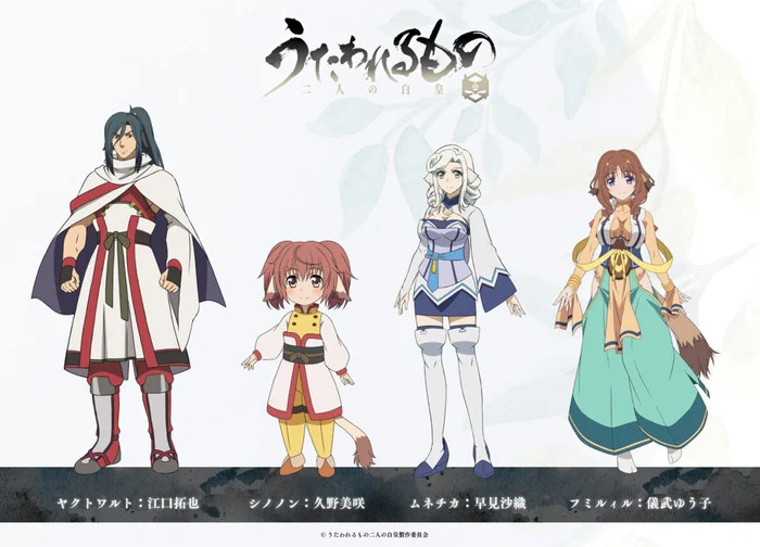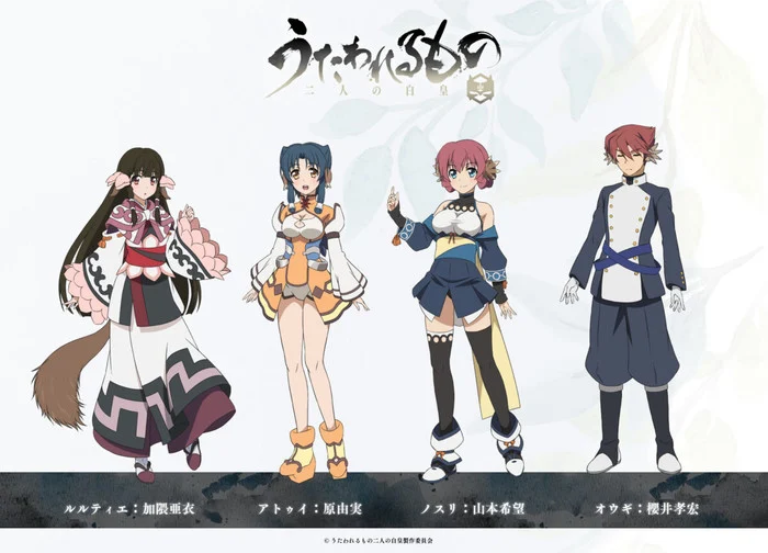 O elenco recém-anunciado (todos retornando de parcelas anteriores de Utawarerumono) inclui (da esquerda para a direita na imagem abaixo):