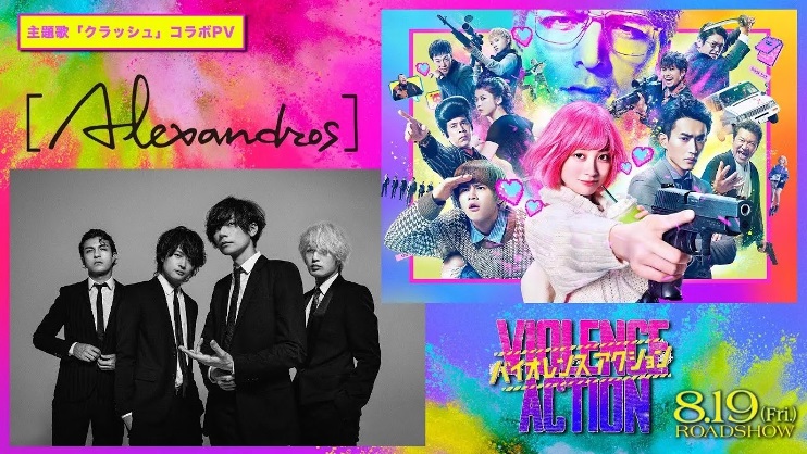 O site oficial para a adaptação em filme live-action do mangá de The Violence Action do autor Shin Sawada e do artista Renji Asai, divulgou um vídeo promocional de “colaboração” com as imagens do filme ambientado na música tema do filme “Crush” de Alexandros.