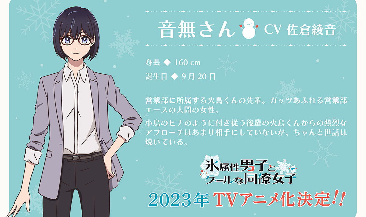 O site oficial para a adaptação em anime TV do mangá de Miyuki Tonogaya, The Ice Guy and His Cool Female Colleague (Kōri Zokusei Danshi to Cool na Dōryō Joshi), revelou na quarta-feira (17/08) mais dois membros adicionais ao elenco.
