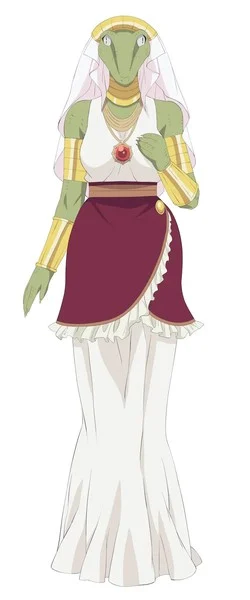 Megumi Han como Amit, a princesa da raça crocodiliana
