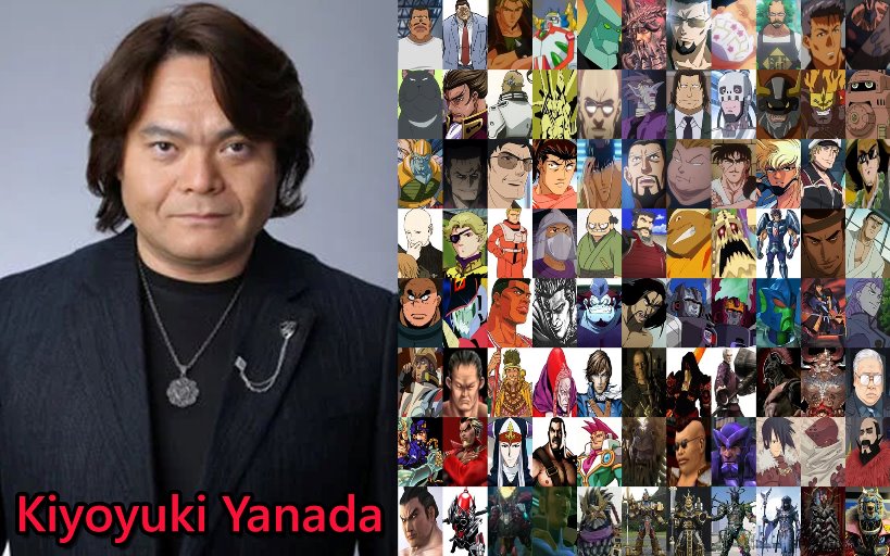 Kiyoyuki Yanada é mais conhecido pelos papeis como Takenori Akagi em Slam Dunk, Shuten Dōji em Legendary Armor Samurai Troopers (Ronin Warriors), Megatron em Transformers: Armada, Shu Aozaki em Durarara!!×2, Andromon em Digimon Adventure, Grunbeld Arcbeast em Berserk, Toraichi Tamiya em Ah! My Goddess, Andre Camel em Detective Conan, Takeshi Ooi em Death Note, Saeki em Hajime no Ippo, Gateau Mocha em Sorcerer Hunters, Zabine Chareux em Mobile Suit Gundam F91, e Tessai Tsukabishi em Bleach entre outros. Ele também interpretou Richter Belmont em Castlevania e Mike Haggar nos jogos Final Fight.