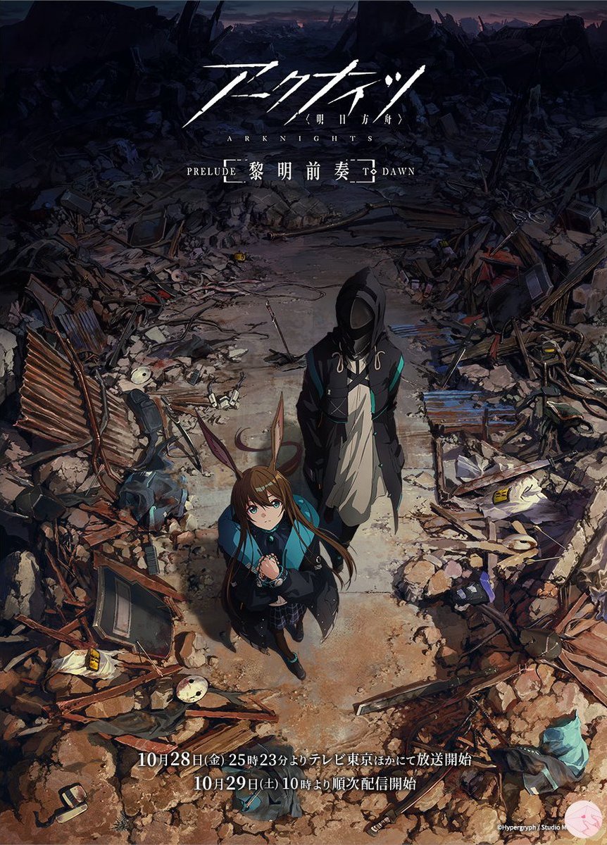 O anime Arknights: Prelude to Dawn estreou na TV Tokyo em 28 de Outubro 2022. A Crunchyroll transmitiu o anime quando foi ao ar no Japão.