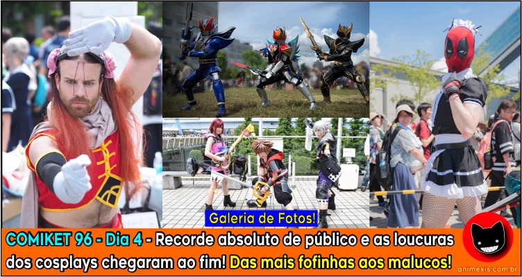 O 2º dia do Comiket 96 recebeu 170.000 pessoas no Tokyo Big Sight e o forte calor deve ter deixado alguns cosplayers com os parafusos soltos!