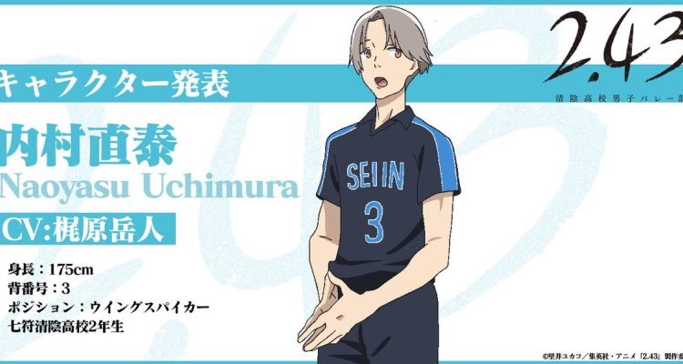 A Funimation vai lançar o anime online para fora do Japão. Kenjiro Abekawa vai dar voz à Jungo Takasugi em 2.43: Seiin Koukou Danshi Volley-bu.