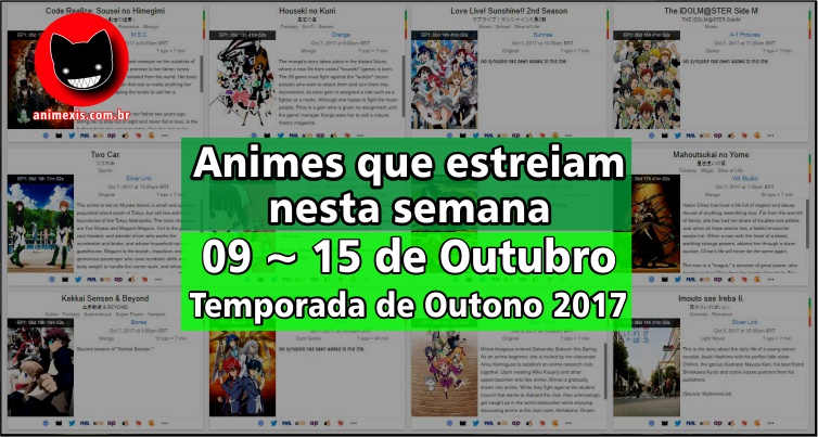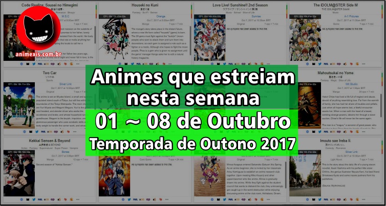 O Anime Xis trás para você o Listão com todas as estreias dos Animes da Temporada deOutono 2017 e tem séries para todos os gostos! Vêm com a gente!