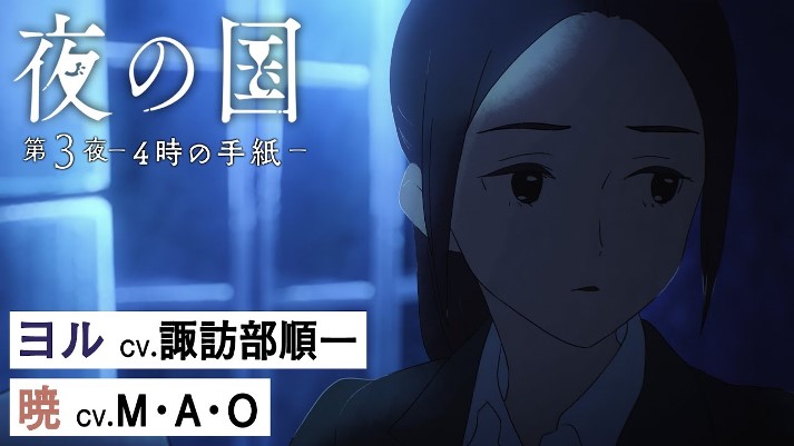 Terceiro episódio, ou a 3ª “noite” do anime curto Night World vai contar com a seiyuu M.A.O e estreará no canal da cantora Aimer no Youtube.