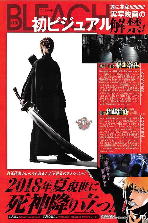 Filme live-action de Bleach vai estrear nos cinemas do Japão em 20 de Julho. Sota Fukushi e Hana Sugisaki estão no elenco como Ichigo e Rukia, respectivamente.