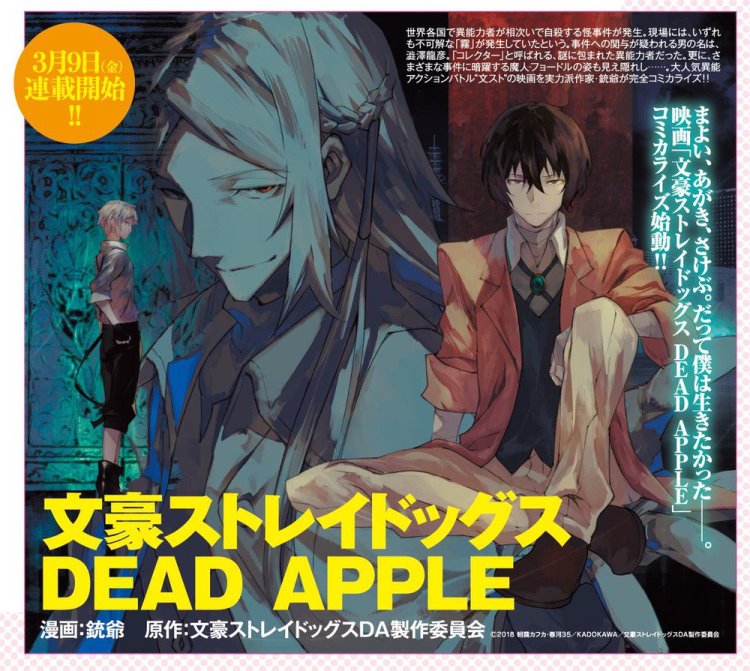 Mangá será lançado nesta sexta-feira. Filme anime Bungou Stray Dogs: Dead Apple foi lançado no último sábado nos cinemas japoneses.