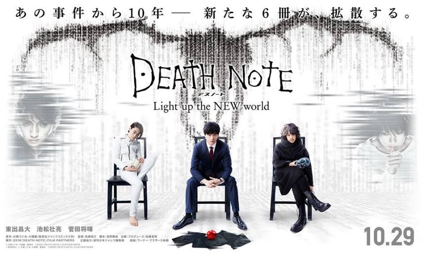 Visual para o filme com Death Note Light up the NEW World apresenta Masahiro Higashide, Masaki Suda, Sousuke Ikematsu.