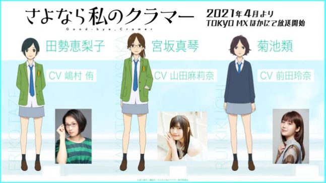 Tomoyo Kurosawa, Aoi Yūki e Shiho Kokido se juntam ao elenco do projeto de filme e anime TV Farewell, My Dear Cramer, que estreiam em Abril 2021.