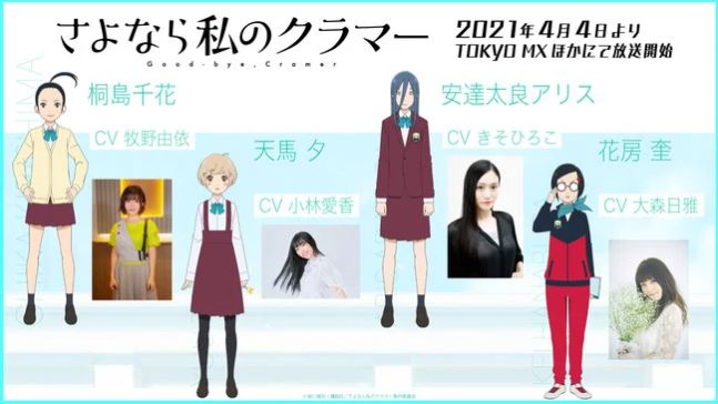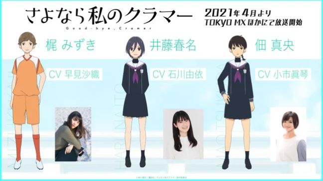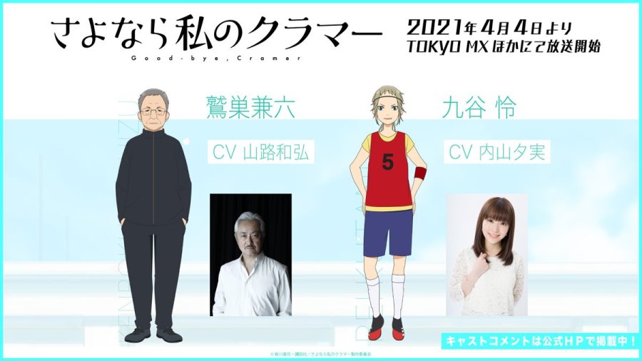 Elenco adicional dão vozes as personagens do time de futebol da protagonista no anime Farewell, My Dear Cramer que estréia em Abril 2021.