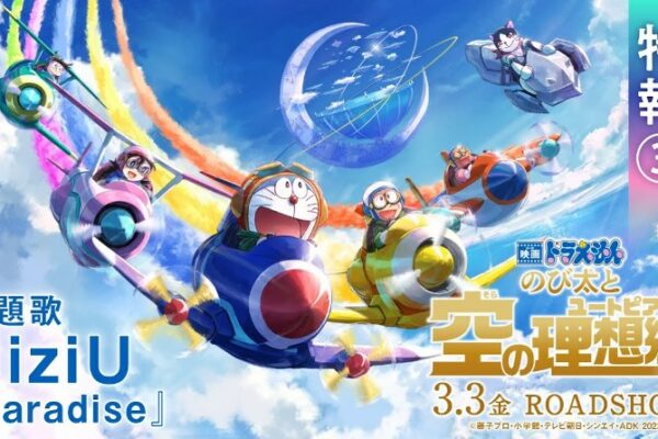 O grupo feminino NiziU apresenta a música tema “Paradise”. O filme anime Eiga Doraemon: Nobita to Sora no Utopia estréia em 3 de Março 2023.