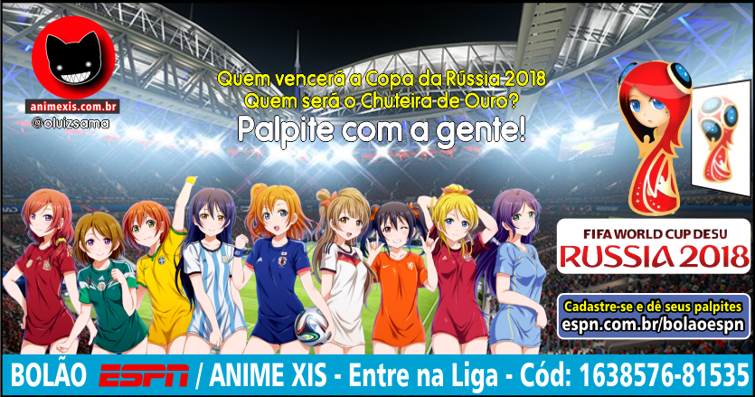 Em ritmo de Copa do Mundo, queremos saber se os nossos fãs de animes também são bons de palpites. Venha participar da LIGA ESPN / ANIME XIS.