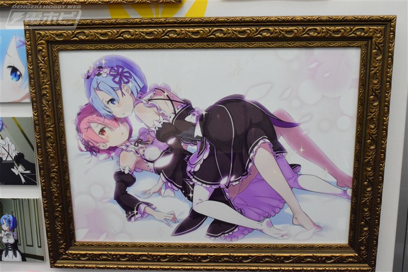 Exposição com ilustrações, estátua tamanho real, bolo, tudo para comemorar o aniversário de Rem de Re:Zero… Tem coisas da Ram também, mas…