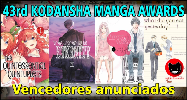 Go-Toubun no Hanayome, Fumetsu no Anata e, Perfect World e Kinou Nani Tabeta? estão entre os premiados da premiação deste ano da Kodansha.