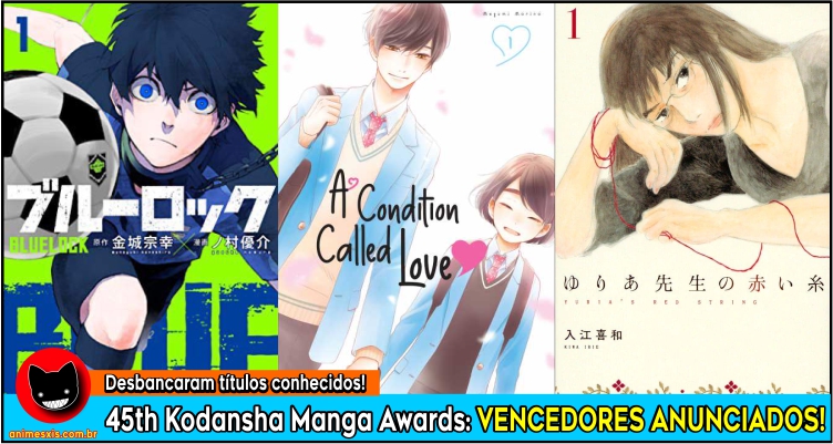 “Blue Lock”, “A Condition Called Love” e “Yuria Sensei no Akai Ito” vencem nas categorias Shounen, Shoujo e Geral do Kodansha Manga Awards de 2021.