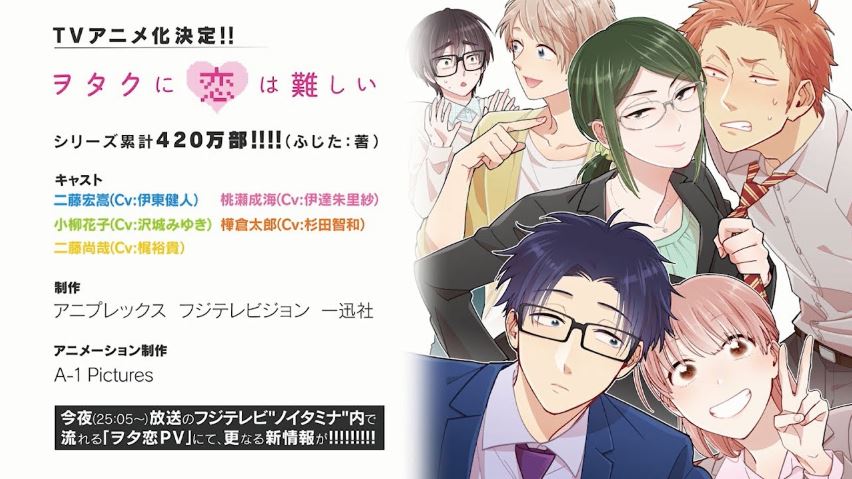 Arisa Date, Kent Itō, Miyuki Sawashiro, Tomokazu Sugita e Yuuki Kaji estrelarão em Otaku ni Koi wa Muzukashii, que será produzido pela A-1 Pictures.
