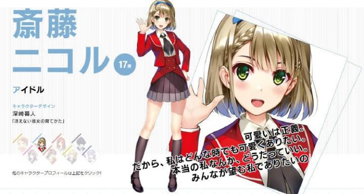 A idol do 22/7 retornará as suas atividades com o grupo após sua recuperação. Mei Hanakawa vai dar voz a personagem Nicole Saito no anime em 2020.