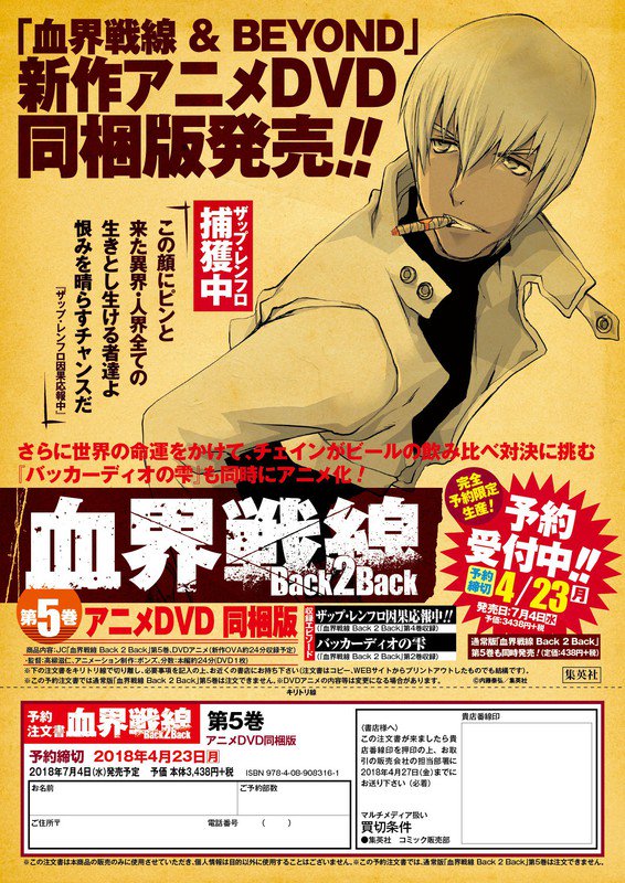 OVA de Kekkai Sensen & Beyond contará histórias de Zapp e Chain do mangá Blood Blockade Battlefront Back 2 Back.
