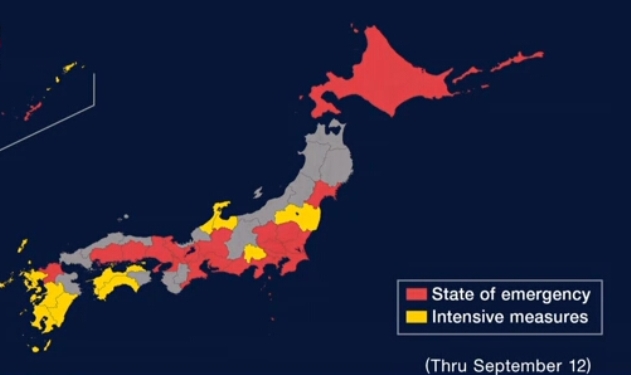 Anúncios, Japão, NOTÍCIAS Japão confirma extensão do Estado de Emergência contra a COVID-19 até 30 de Setembro Posted on10 de setembro de 2021 Mesmo com queda de casos, o Estado de Emergência foi prorrogado a partir da data original de 12 de Setembro em 19 de 21 prefeituras.
