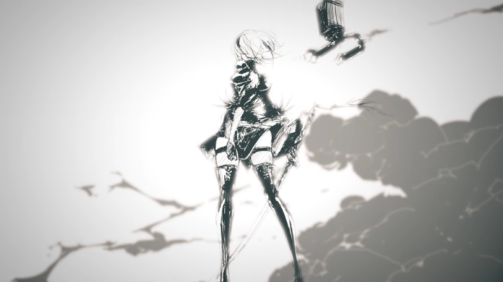 Android da unidade de resistência do solo apresentado no vídeo ‘Promotion File 006’ para o anime NieR:Automata Ver 1.1a.