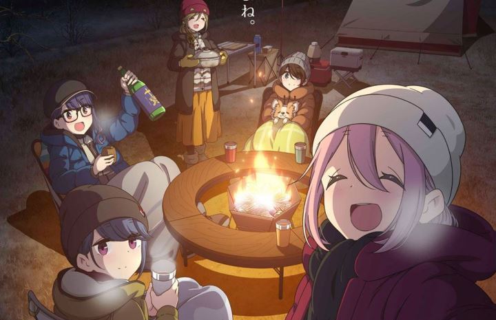 Nadeshiko e outros unem forças para transformar local fechado em acampamento no filme Eiga Yurucamp, que estréia no Japão em 1º de Julho.