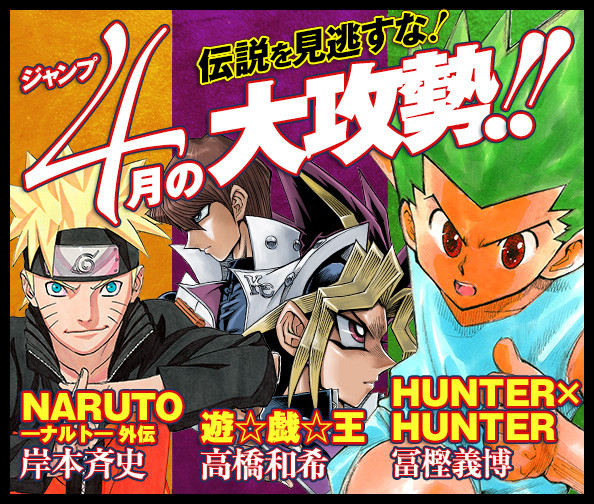 O site da Shonen Jump, divulgou uma imagem onde o destaque fica por conta de Naruto, Hunter x Hunter e Yu-Gi-Oh!, indicando que vem novidades por ai!