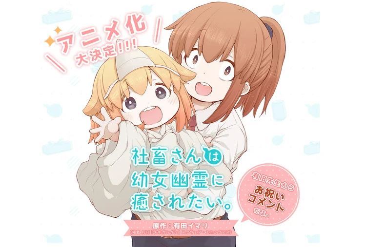 Mangá Shachiku-san wa Yоujo Yuurei ni Iyasaretai. conta sobre garota fantasma que ajuda uma mulher que é tratada como “escrava” na empresa.