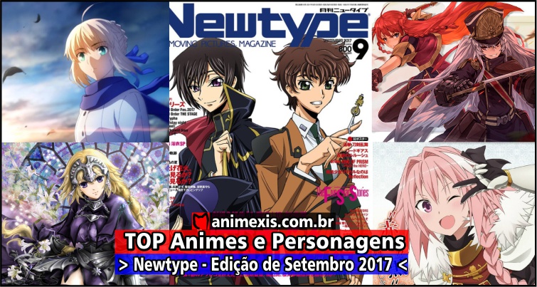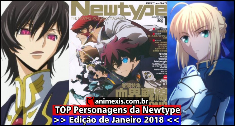 Um domínio de Code Geass e Fate nos rankings da Newtype deste mês. Japoneses elegem os animes e personagens mais populares do momento.
