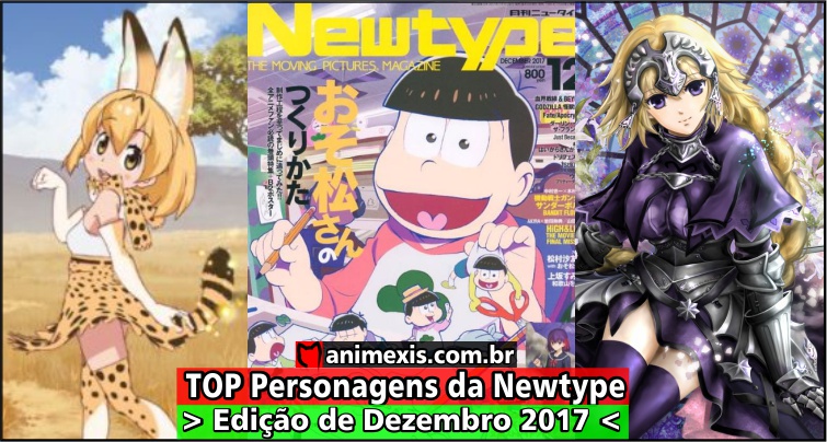 Mesmo com vários personagens de Osomatsu-san e reaparições de personagens de outras franquias, o TOP Personagens da Newtype ficou por conta de Fate Series!